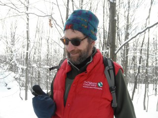 Over-reliance on Technology has created problems for societies throughout history who have thought that the new tool or technique would solve the difficulties of their current time and place. And it’s true that for me the slick design of an iPhone, the authoritative ease with which that much-desired fact appears, and the certainty of the flashing dot on a map screen all have left me enamored with the latest piece of in-the-field technology. So, it was easy to start out for a snow-shoe trip near Petoskey confidently calling up the map on the LTC Explorer app and have my smartphone plot a course to it. Of course, the map does not take into account seasonal or daily weather, and we soon found ourselves on one, and then another, snow-blocked road. If we had only looked at the old-fashioned printed guide, we would followed the written directions to the Skyline Trail preserve that brought us in from the north, where the road is plowed.