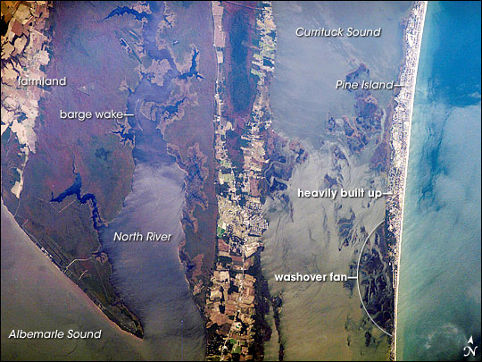 The powerful ocean, source of life and sculptor of the Outer Banks, will be the relentless killer of the place I love. The barrier islands of Carolina were formed when the young and tall Appalachians eroded into a much lower sea. The sandbars moved off-shore, and when sea levels rose again the islands moved in. They have been fairly stable for the last 2000 years, but rising sea levels have begun to move them westward again. Hurricanes and nor’easters blow open channels and carry sand into the sounds between the mainland and the Outer Banks. The expanding wetlands there are nurseries for fish and other aquatic life.
